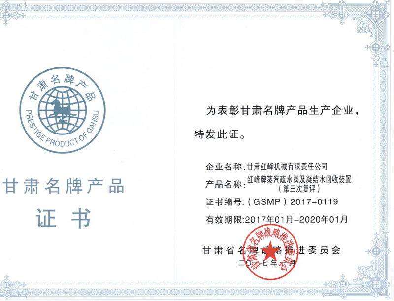 Gansu famous brand product certificate