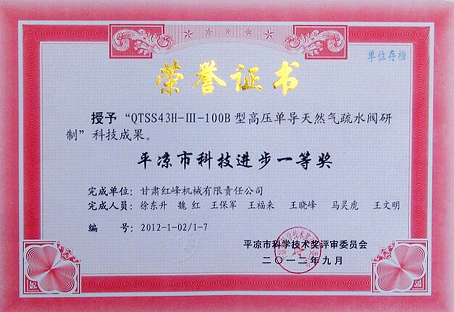 2012 The first prize of Pingliang Science and Technology Progress Award